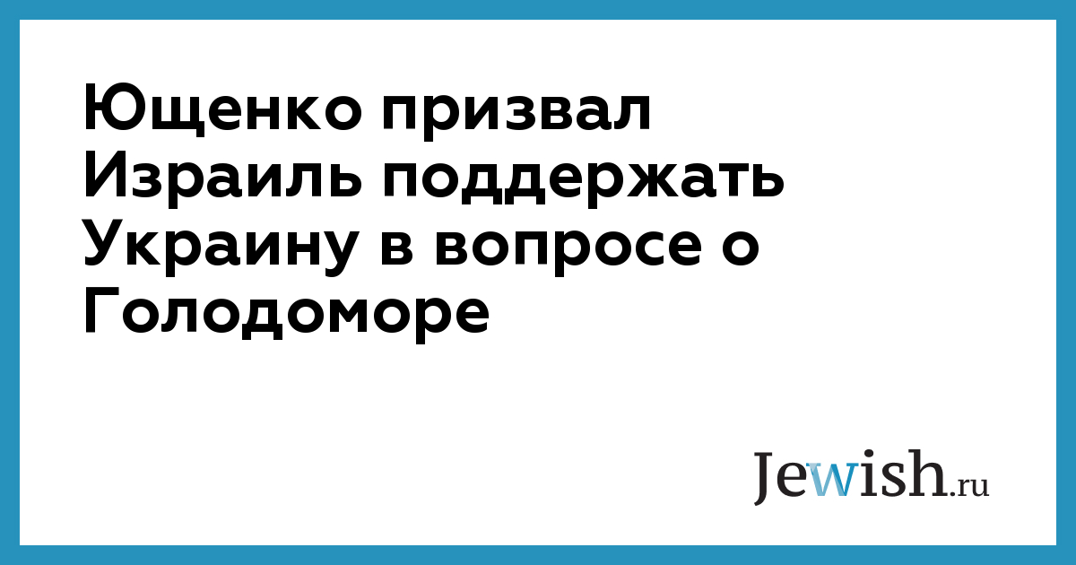 Президент Украины Виктор Ющенко призвал Израиль поддержать на предстоящей сессии Генассамблеи ООН проект документа о признании Голодомора актом геноцида украинского народа, сообщила пресс-служба президента Израиля.