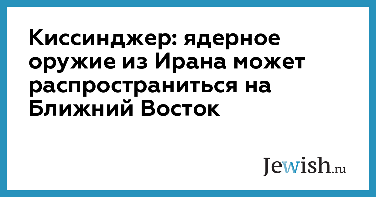 Экс-госсекретарь США Генри Киссинджер считает, что если Иран станет ядерной державой, ядерное оружие распространиться на Ближний Восток.