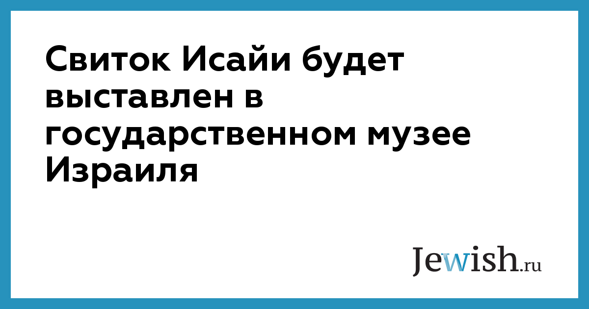 В честь 60-летия еврейского государства Израильский музей решил выставить для общего обозрения один из древнейших танахических памятников – Свиток Исайи (Ишаягу), возраст которого насчитывает более 2100 лет. Показ продлится всего два месяца – с 19 мая по 30 августа, после чего свиток снова поместят в хранилище, где созданы специальные условия и поддерживается определенная температура, освещение и влажность.