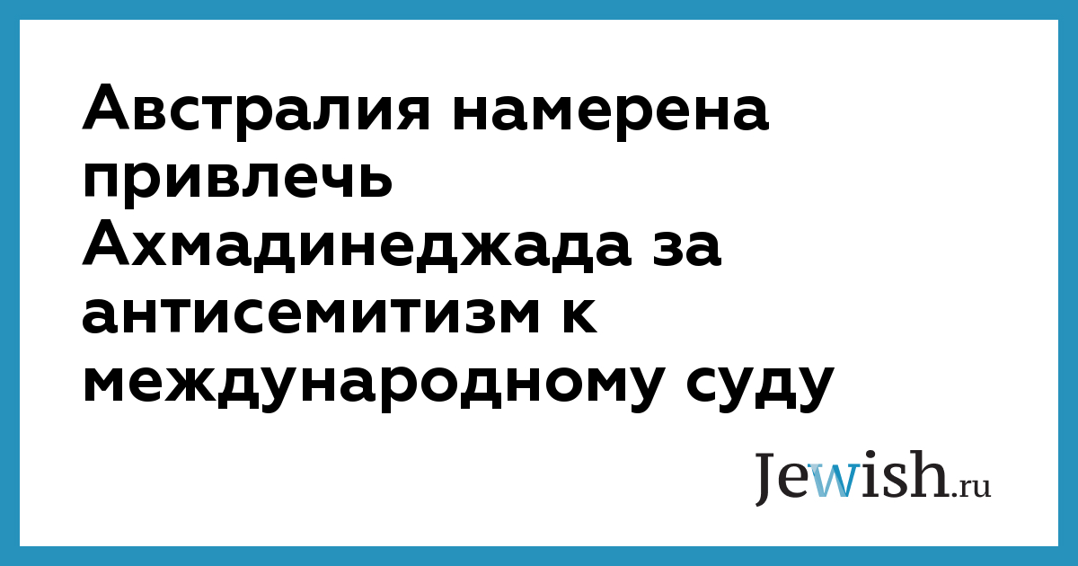 Австралия рассматривает возможности привлечения к международному суду за разжигание нависти против Израиля и антисемитизм президента Ирана Махмуда Ахмадинеджада, сообщает AFP. Как отмечает агентство, об этом в среду заявил австралийский премьер Кевин Радд.