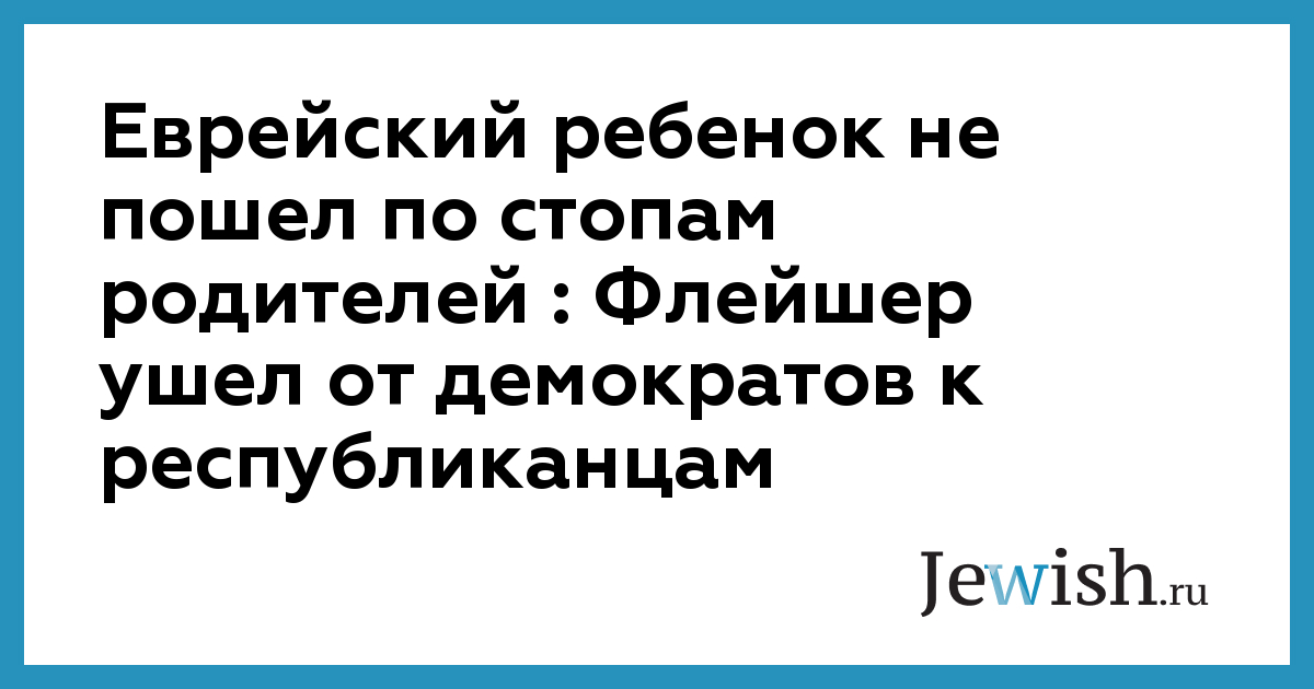 Еврейский ребенок не пошел по стопам родителей : Флейшер ушел от демократов к республиканцам