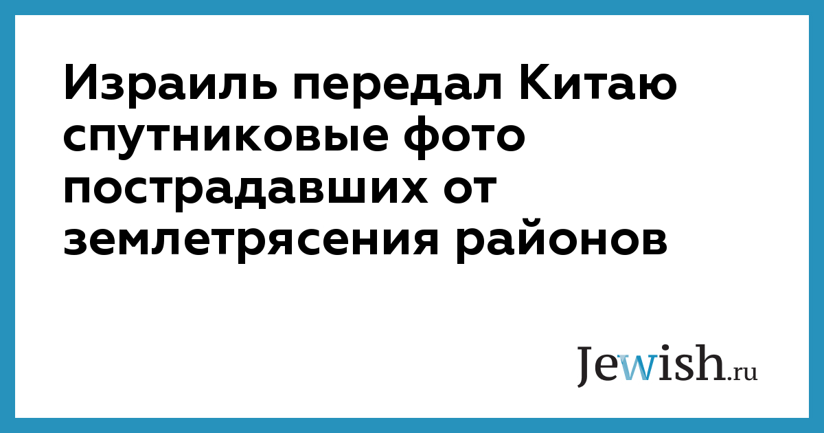 По просьбе китайского руководства Израиль передал КНР спутниковые фотографии районов провинции Сычуань, пострадавших от землетрясения, в которые до сих пор не могут добраться спасатели.