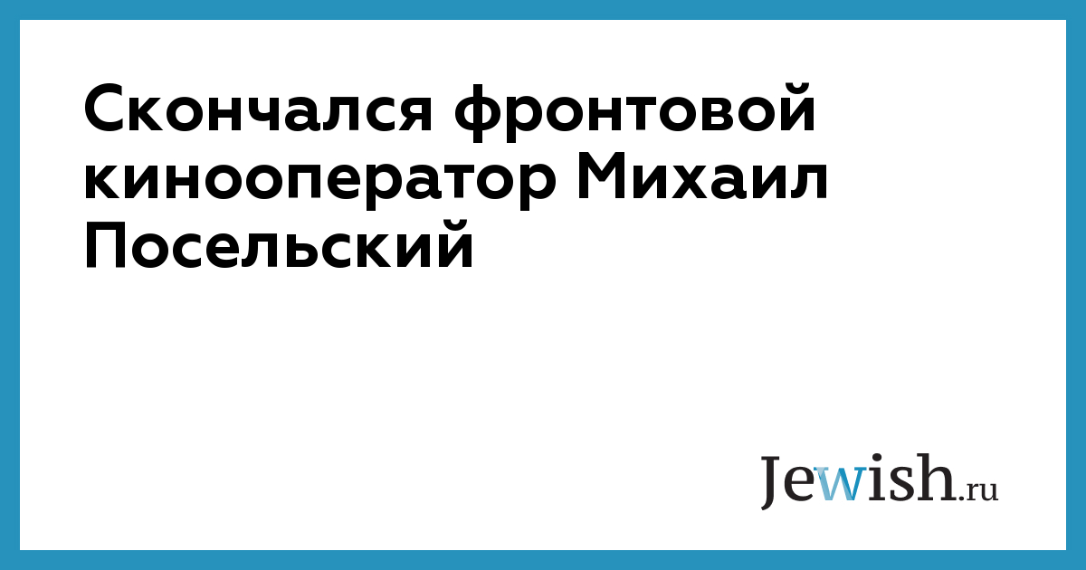 Прославленный фронтовой кинооператор Михаил Посельский скончался в субботу в Москве на 91-м году жизни. Как сообщила сестра покойного, известный киновед Наталия Венжер, прощание с мастером кинодокументалистики пройдет 20 мая в Союзе кинематографистов.