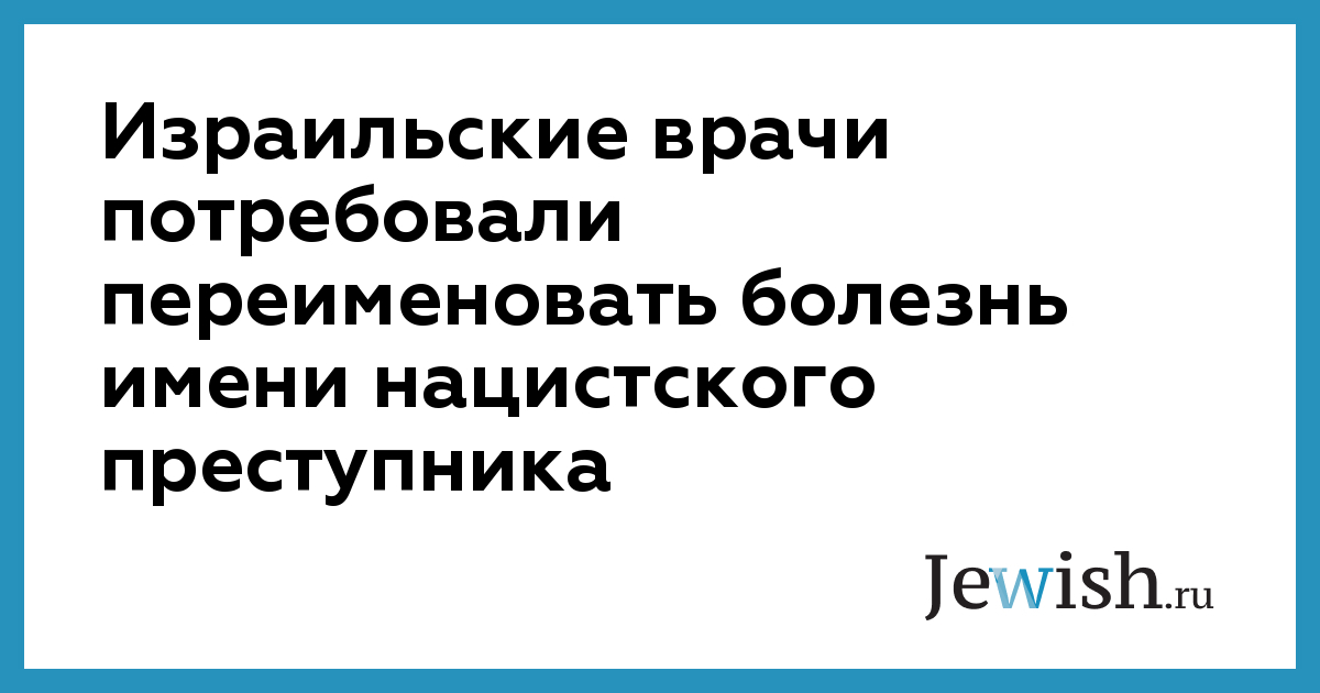 Израильские врачи потребовали переименовать болезнь имени нацистского преступника