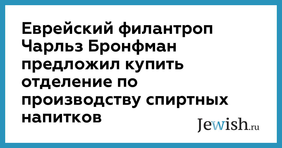 Еврейский филантроп Чарльз Бронфман предложил купить отделение по производству спиртных напитков