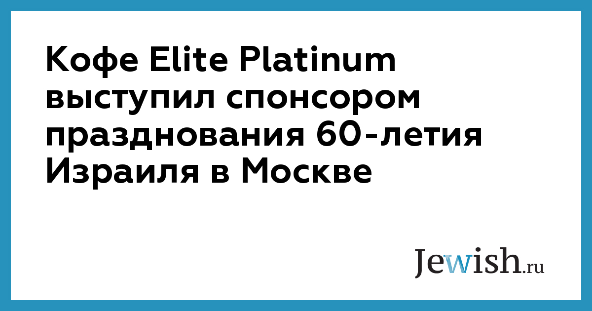 Кофе Elite Platinum выступил генеральным спонсором празднования в Москве 60-летия независимости еврейского государства, сообщается в пресс-релизе компании "Штраусс".