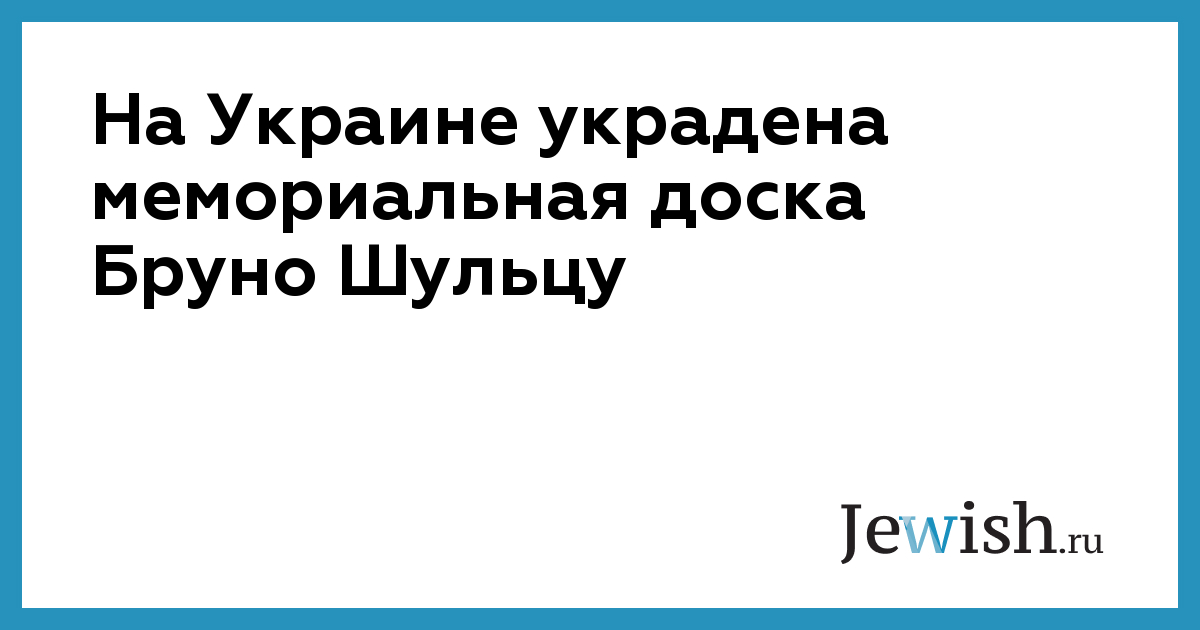 Украдена бронзовая мемориальная доска еврейскому художнику Бруно Шульцу, установленная полтора года назад польской организацией в родном городе писателя Дрогобыче Львовской области, в том месте, где Шульца застрелил нацистский офицер 19 ноября 1942 года.