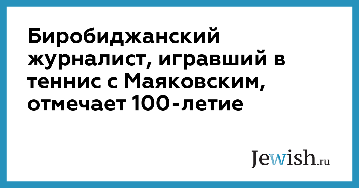 Биробиджанский журналист, игравший в теннис с Маяковским, отмечает 100-летие