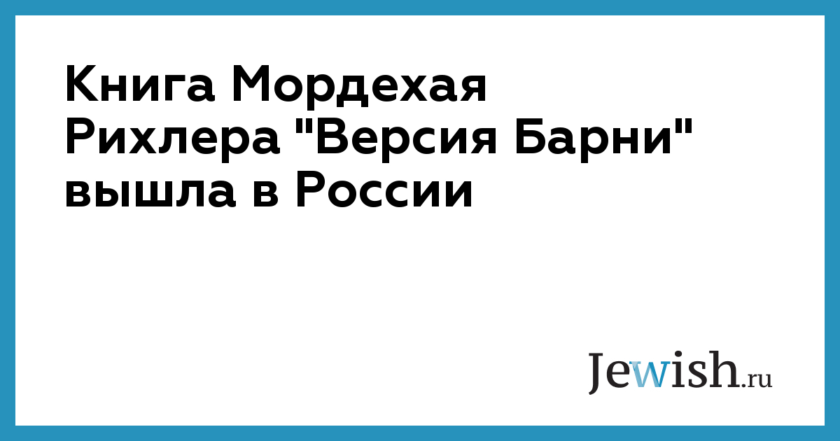 Книга Мордехая Рихлера "Версия Барни" вышла в России