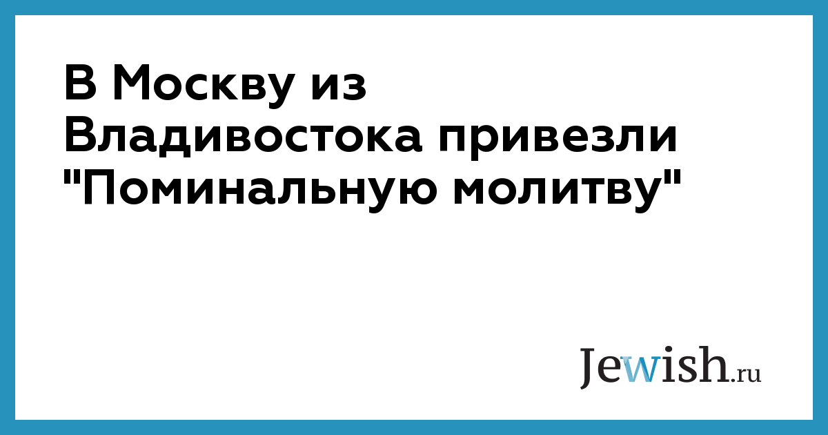 В Москву из Владивостока привезли "Поминальную молитву"