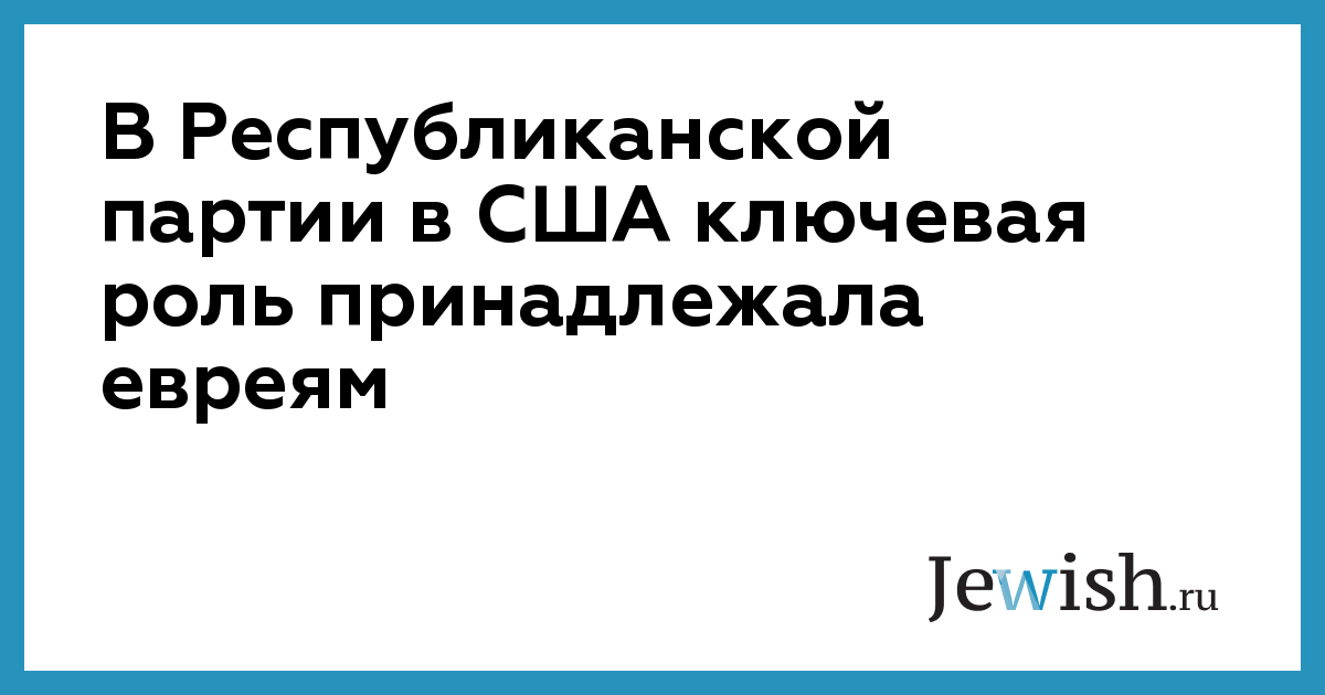 В Республиканской партии в США ключевая роль принадлежала евреям