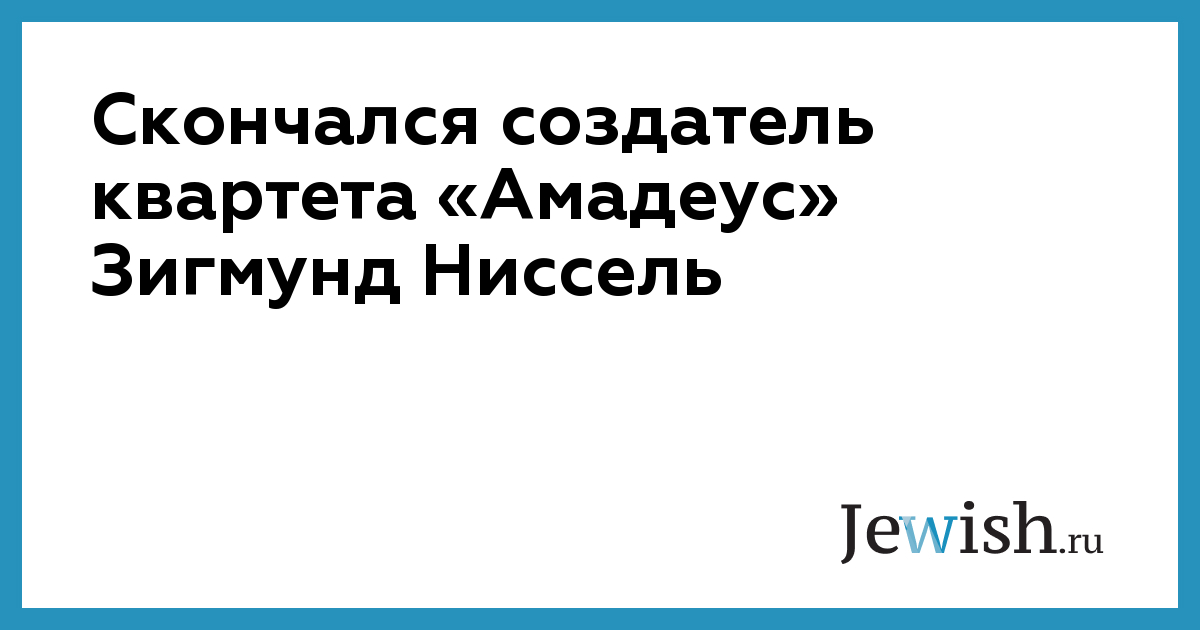 Создатель квартета «Амадеус», скрипач, Зигмунд Ниссель скончался на прошлой неделе в своем доме в Лондоне после продолжительной болезни. Ему было 86 лет. Его смерть повлекла за собой смерть всемирно известного ансамбля.