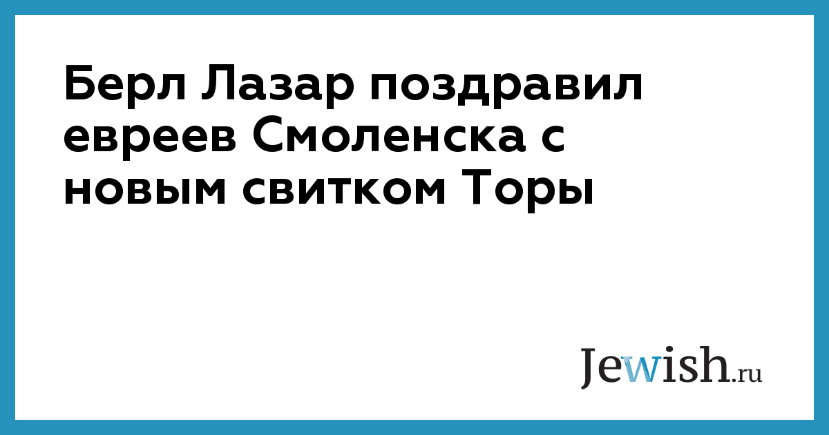 Надеюсь, что сегодняшнее празднество даст новый импульс возрождению и развитию еврейства на вашей прекрасной земле", — говорится в поздравительном послании Берла Лазара евреям Смоленска.