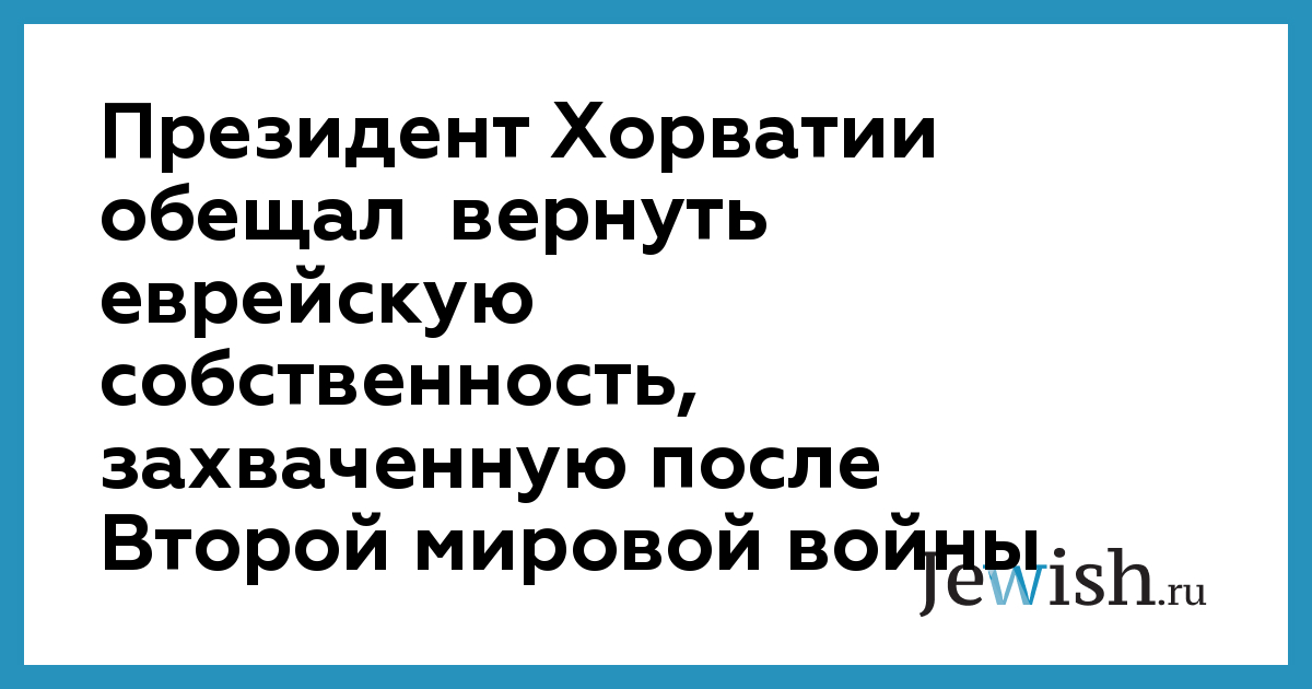 Президент Хорватии обещал вернуть еврейскую собственность, захваченную после Второй мировой войны