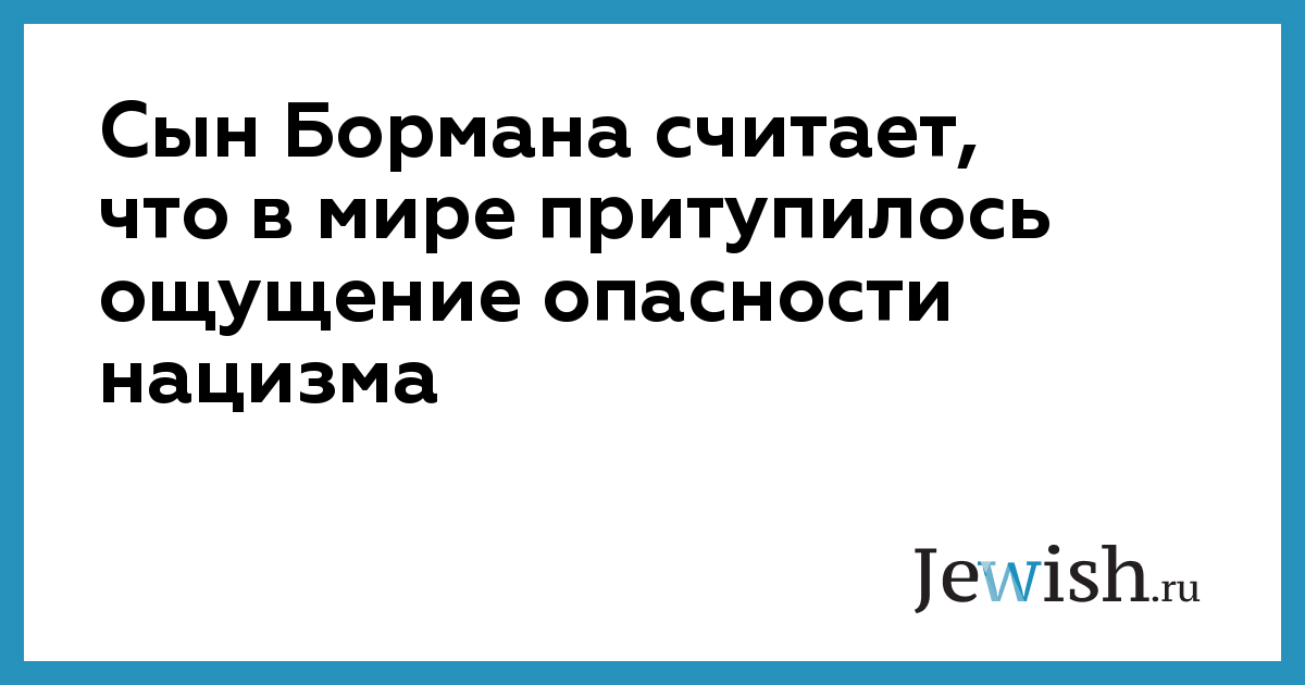 Сын Бормана считает, что в мире притупилось ощущение опасности нацизма