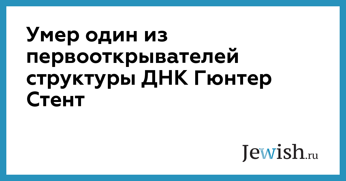 Умер один из первооткрывателей структуры ДНК Гюнтер Стент