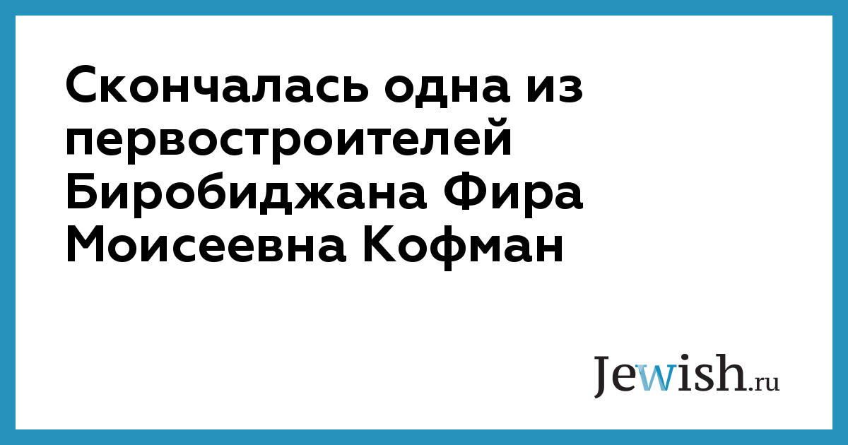 В Биробиджане скончалась Почетный гражданин города Фира Моиссевна Кофман. Об этом сообщила газета «Биробиджанская звезда».