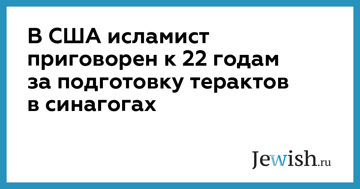 В США исламист приговорен к 22 годам за подготовку терактов в синагогах