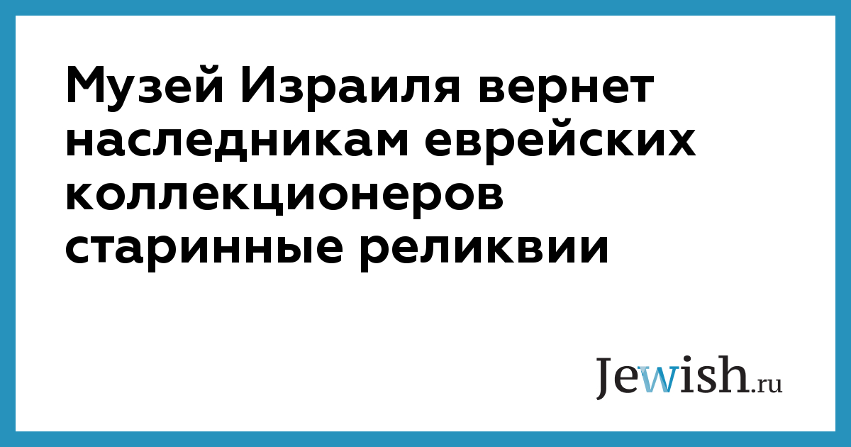 Музей Израиля вернет наследникам еврейских коллекционеров старинные реликвии