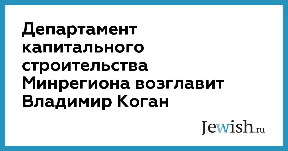 Департамент капитального строительства Минрегиона возглавит Владимир Коган