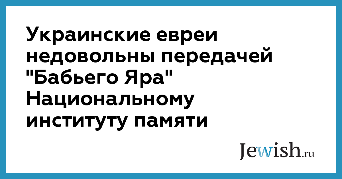 На прошлой неделе украинский кабинет министров принял решение о передаче мемориала Холокоста в Бабьем Яре под контроль Государственного института национальной памяти, сообщает АЕН.
