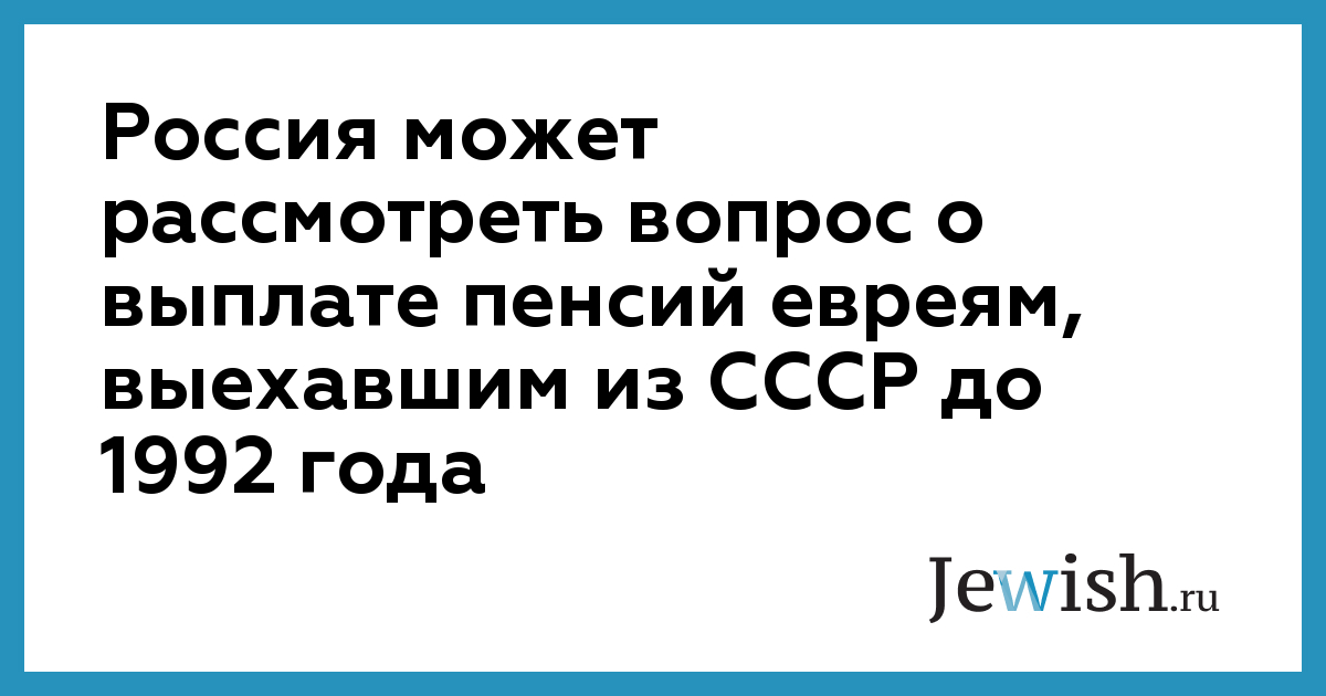 Россия может рассмотреть вопрос о выплате пенсий евреям, выехавшим из СССР до 1992 года