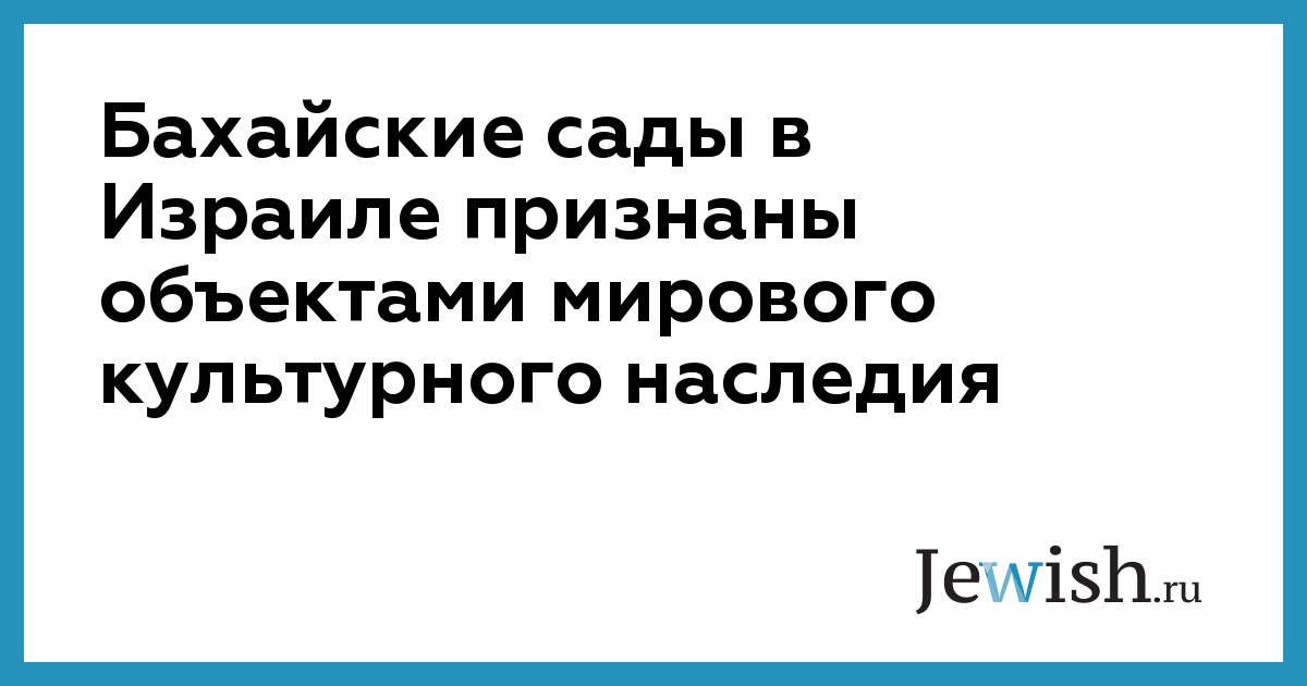 Международная комиссия всемирного наследия ЮНЕСКО (Организация, занимающая вопросами образования, науки и культуры при ООН) в Канаде объявила Бахайские святые места в Хайфе и Акко местами мирового наследия. Комиссия постановила, что бахайские объекты «представляют особые универсальные ценности»», и поэтому они должны числиться в списке культурного наследия человечества.