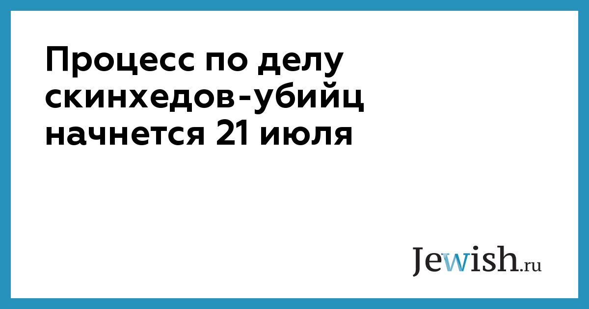 Процесс по делу подростков-скинхедов, обвиняемых в двух убийствах и десяти покушениях на убийство, начнется в Мосгорсуде 21 июля, сообщила РИА Новости руководитель пресс-службы Мосгорсуда Анна Усачева. По ее словам, на скамье подсудимых 13 человек, 12 из них — несовершеннолетние.