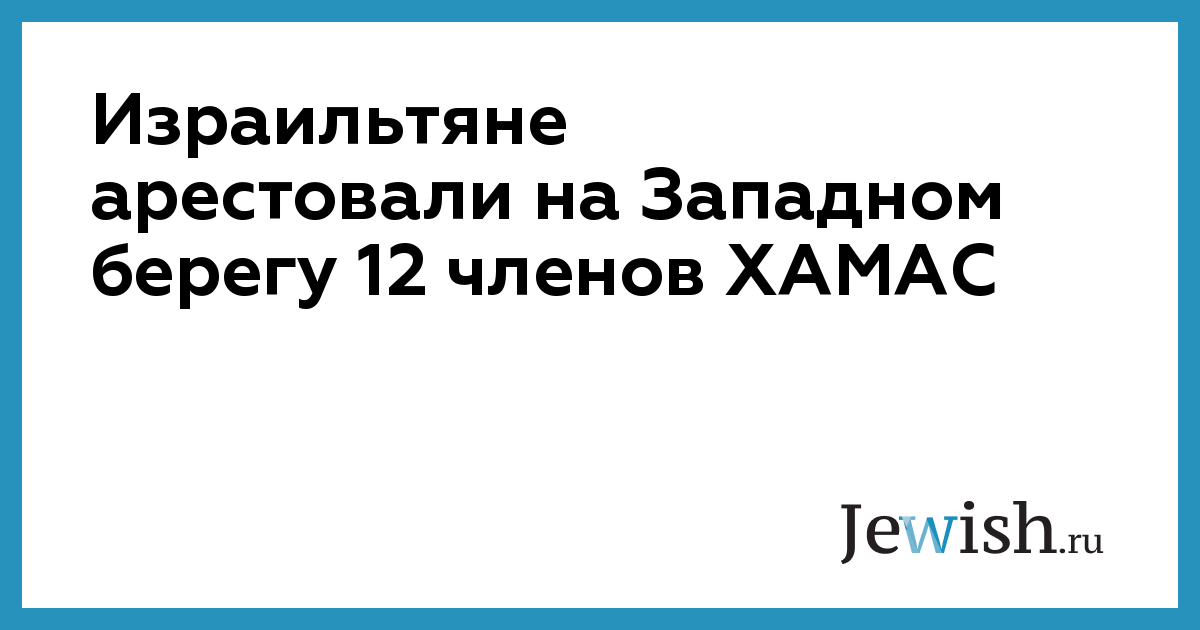Служащие Армии обороны Израиля (ЦАХАЛ) во вторник, 15 июля, арестовали на Западном берегу реки Иордан 12 членов группировки ХАМАС, сообщает AFP.