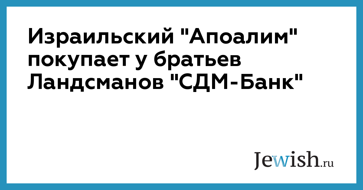 Израильский "Апоалим" покупает у братьев Ландсманов "СДМ-Банк"