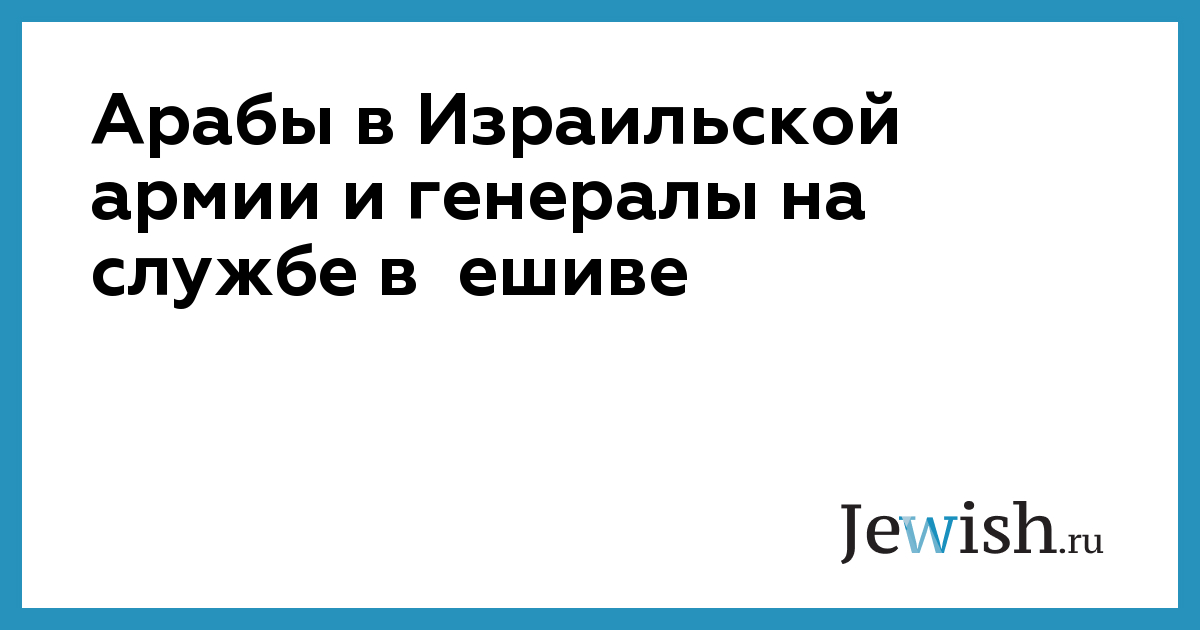 Арабы в Израильской армии и генералы на службе в ешиве