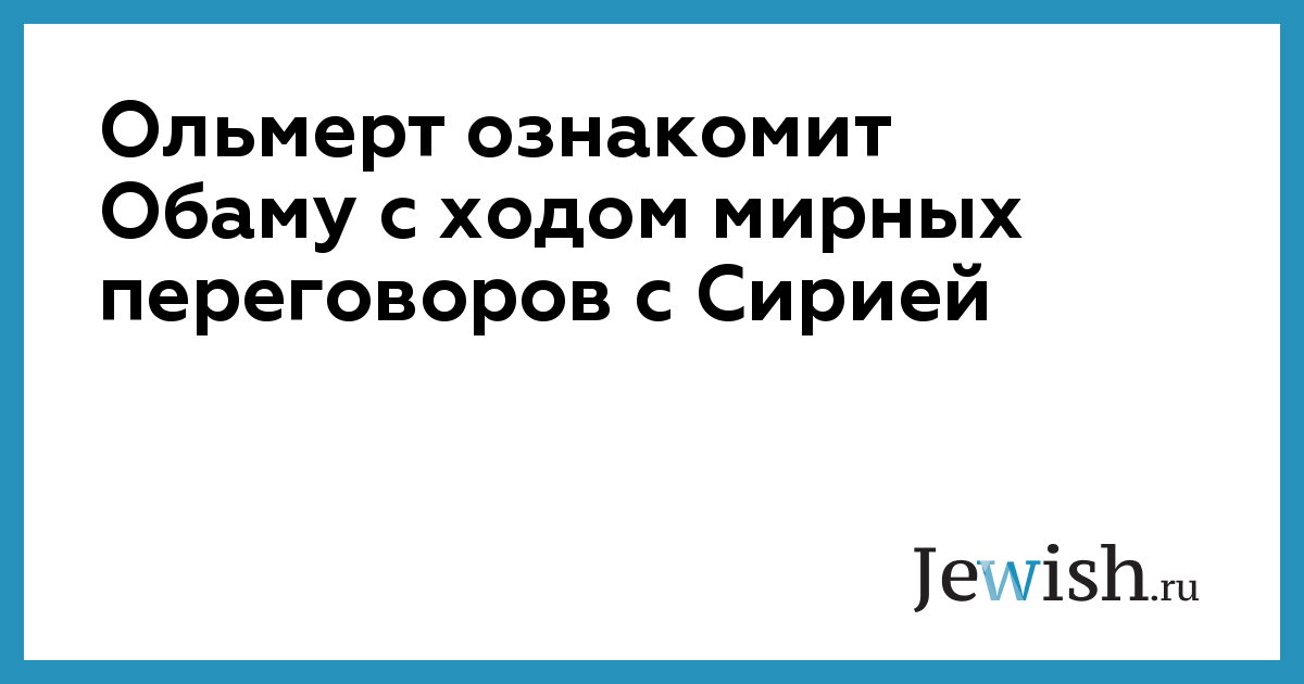 Ольмерт ознакомит Обаму с ходом мирных переговоров с Сирией