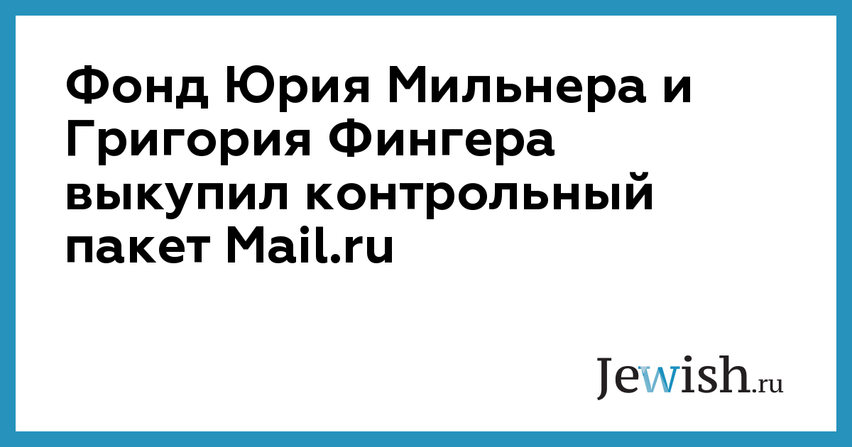 Фонд Юрия Мильнера и Григория Фингера выкупил контрольный пакет Mail.ru