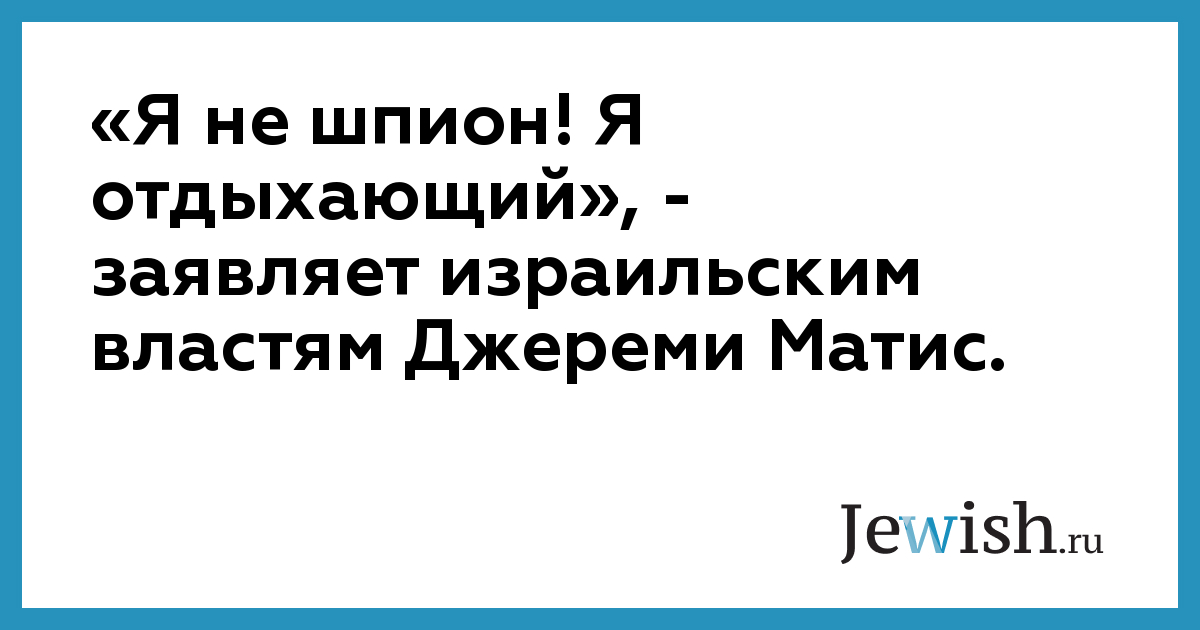 «Я не шпион! Я отдыхающий», — заявляет израильским властям Джереми Матис.
