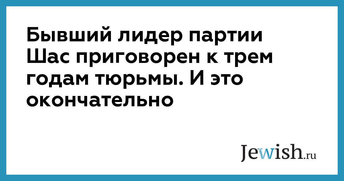 Бывший лидер партии Шас приговорен к трем годам тюрьмы. И это окончательно