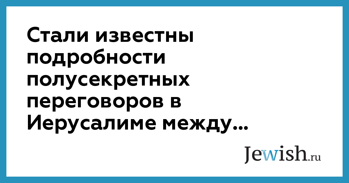 Стали известны подробности полусекретных переговоров в Иерусалиме между...