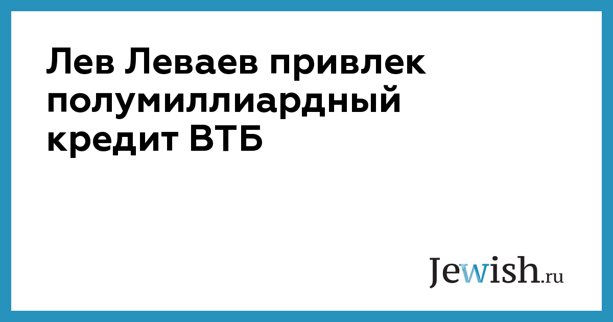 Лев Леваев привлек полумиллиардный кредит ВТБ