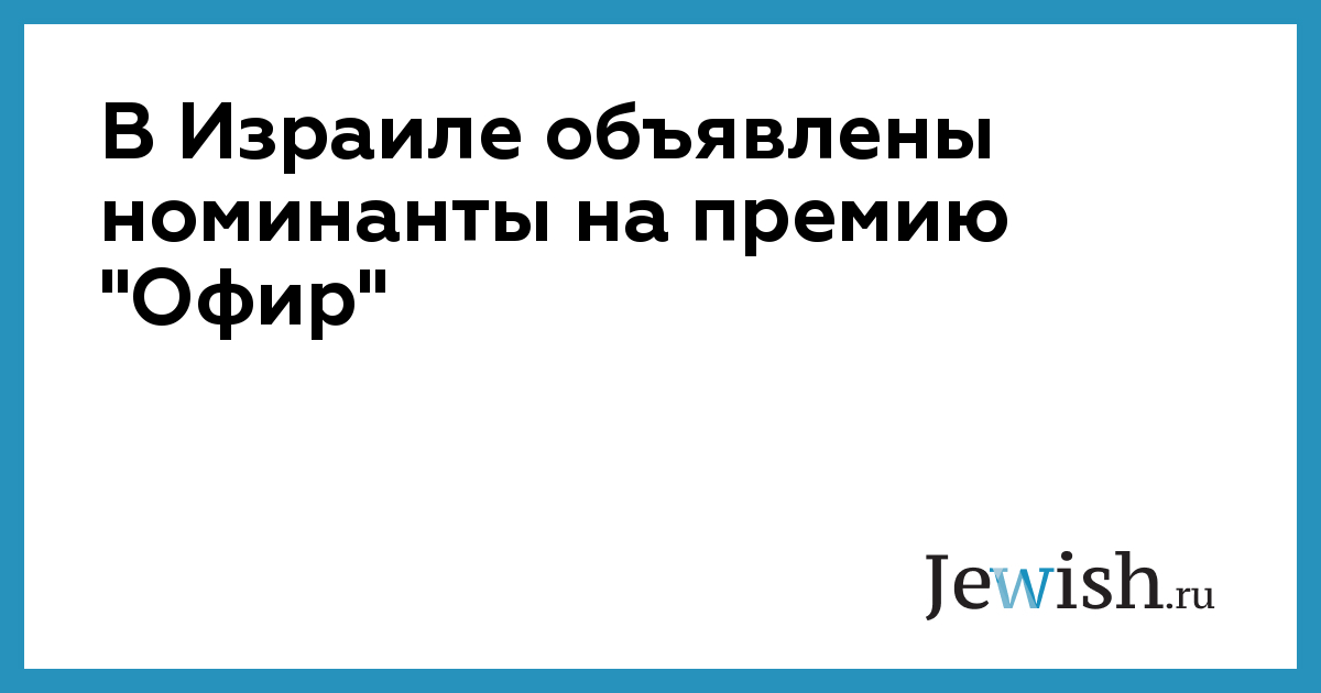 Израильская киноакадемия объявила пять номинантов в категории "лучший фильм" на премию "Офир" — ежегодный конкурс, на котором определяется картина, которую Израиль представляет на премию "Оскар" за лучший фильм на иностранном языке, сообщает Arthouse.ru.