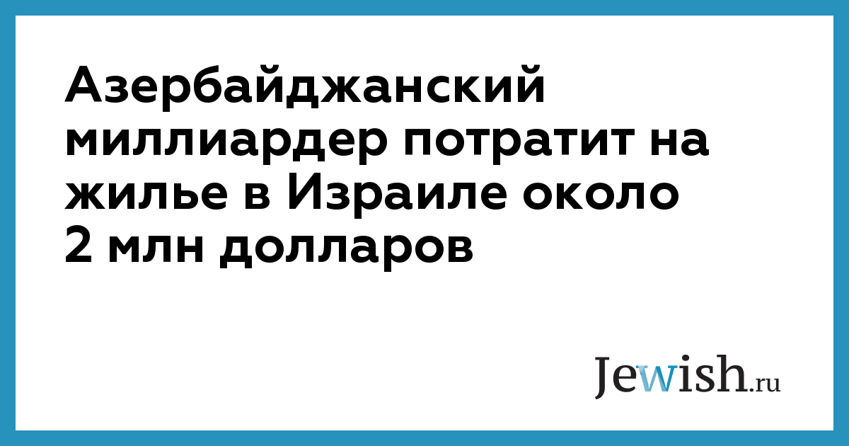 Азербайджанский миллиардер потратит на жилье в Израиле около 2 млн долларов