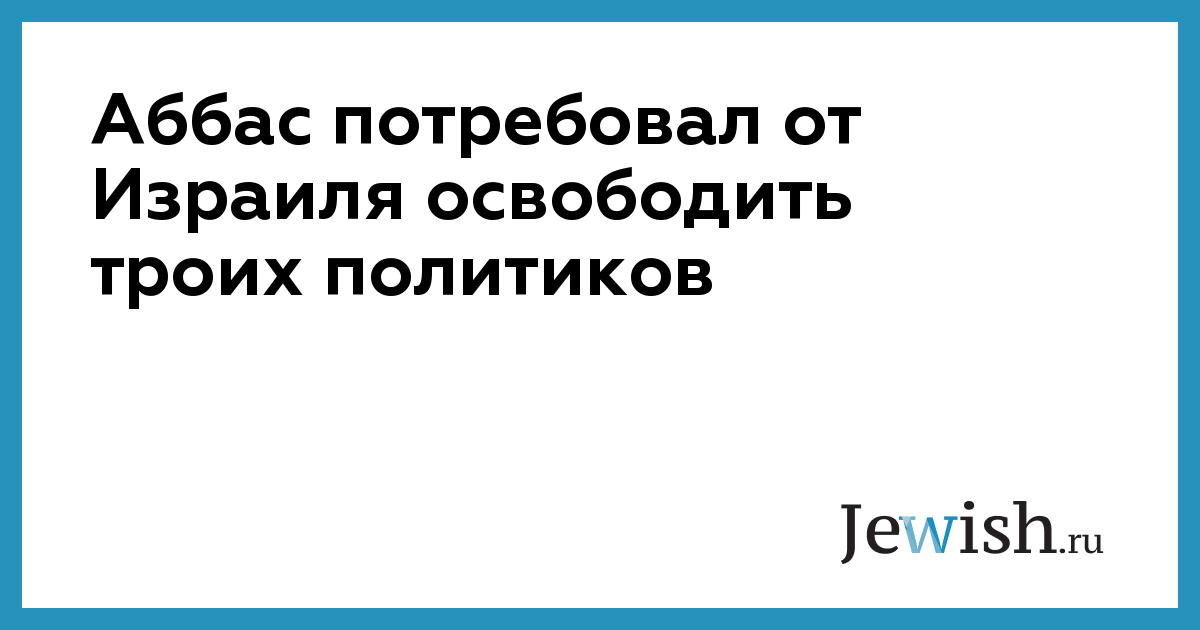 Председатель Палестинской национальной администрации (ПНА) Махмуд Аббас потребовал сегодня на встрече с премьер-министром Израиля Эхудом Ольмертом освободить из тюрем троих высокопоставленных палестинских политиков.