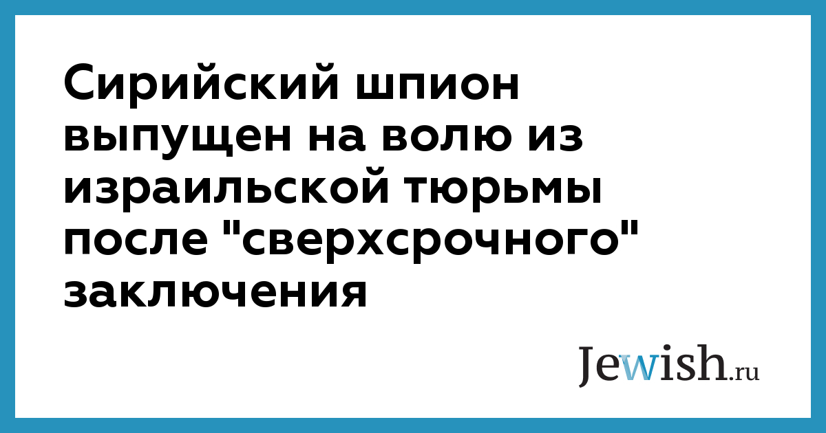 Сирийский шпион выпущен на волю из израильской тюрьмы после "сверхсрочного" заключения