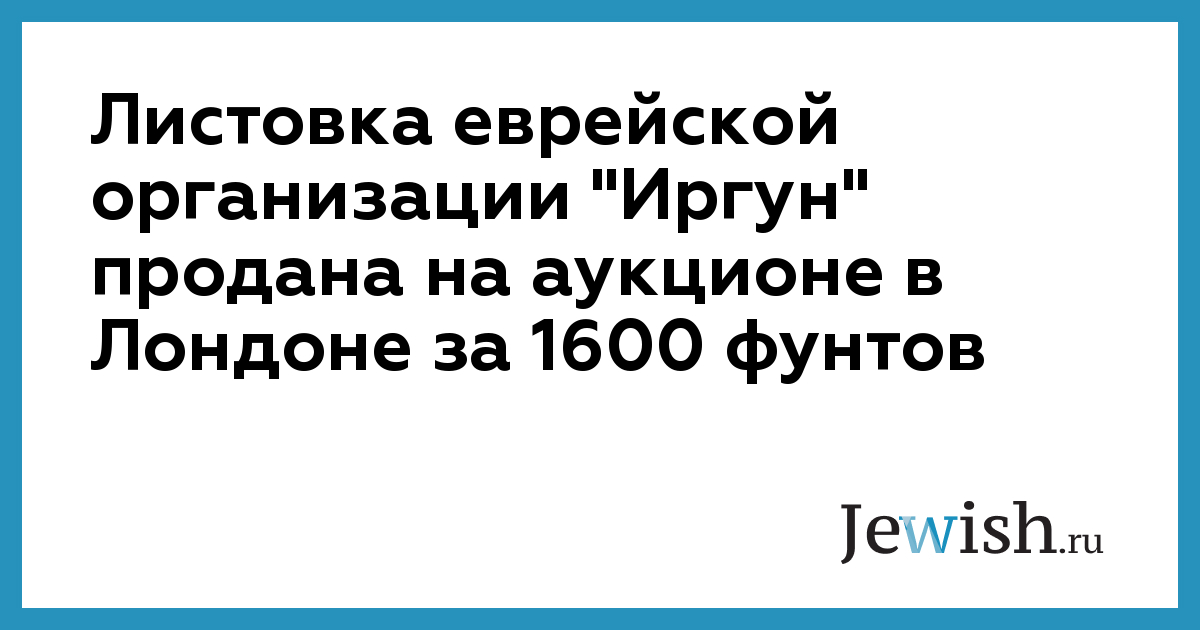 Листовка еврейской организации "Иргун" продана на аукционе в Лондоне за 1600 фунтов