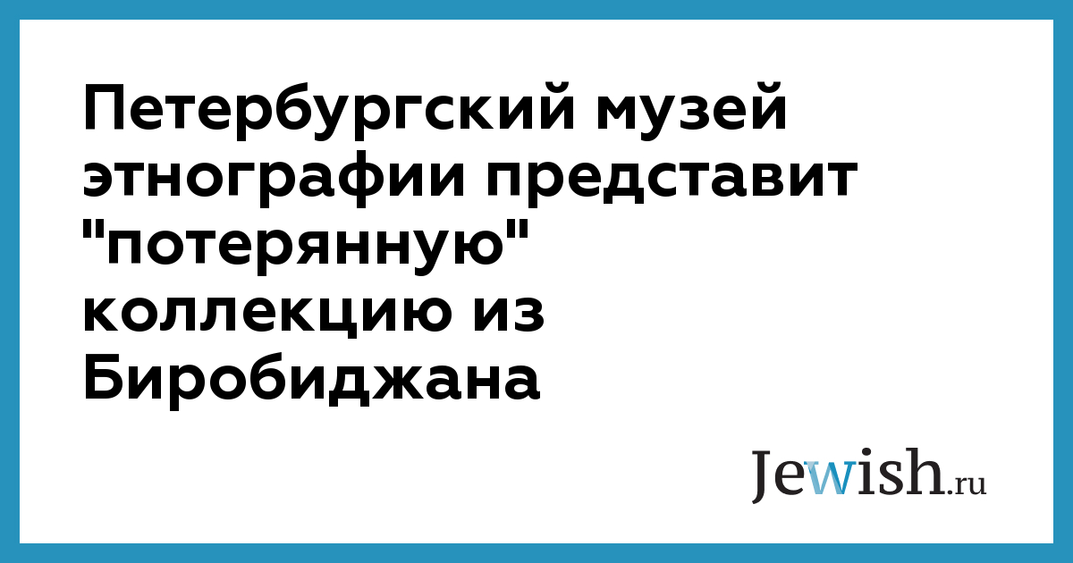 Петербургский музей этнографии представит "потерянную" коллекцию из Биробиджана