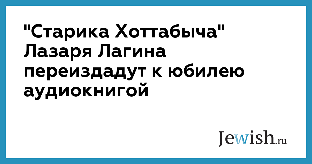 К 70-летию сказки Лазаря Лагина "Старик Хоттабыч", которое отмечается в 2008 году, издательство "Союз" выпустит полную аудиоверсию популярной книги, сообщает РИА "Новости".