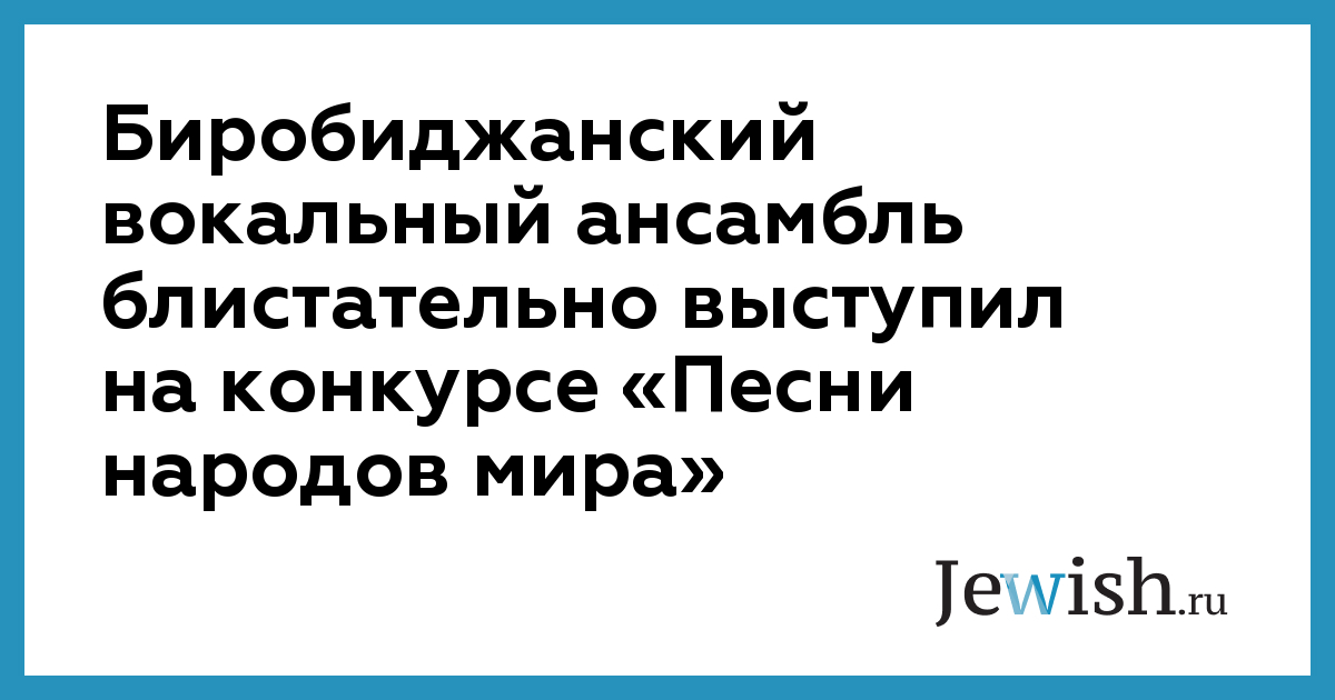 Биробиджанский вокальный коллектив «Алэ инейнэм» блистательно выступил на фестивале-конкурсе «Песни народов мира», состоявшемся во Владивостоке. Об этом сообщила газета «Биробиджанер Штерн».