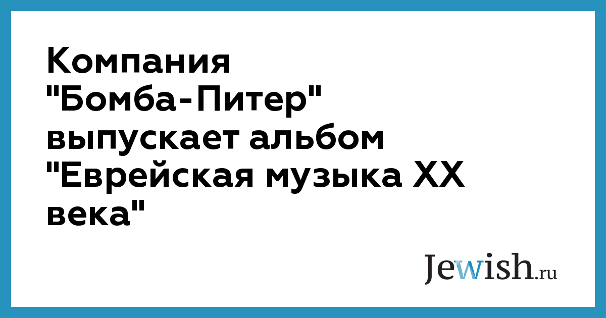 Компания "Бомба-Питер" выпускает альбом "Еврейская музыка XX века"