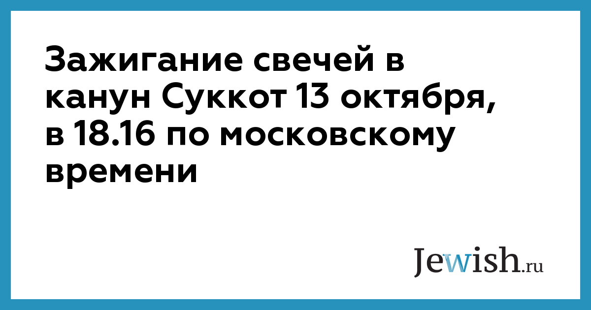 Зажигание свечей в канун Суккот 13 октября, в 18.16 по московскому времени