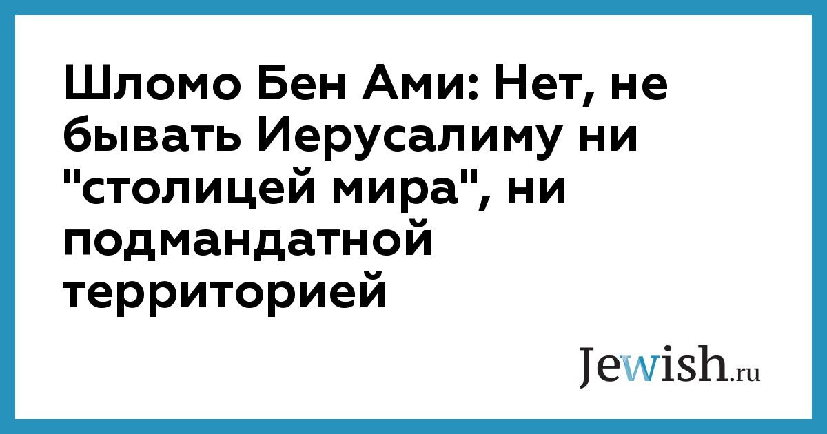 Шломо Бен Ами: Нет, не бывать Иерусалиму ни "столицей мира", ни подмандатной территорией