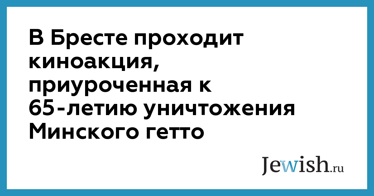 Как сообщает агентство БелаПАН, с 15 по 22 октября в Бресте проходит киноакция "Дни памяти", которая приурочена к 65-летию уничтожения Минского гетто и евреев Беларуси. Она организована предприятием "Брестоблкиновидеопрокат" совместно с городской еврейской общиной "Бриск".