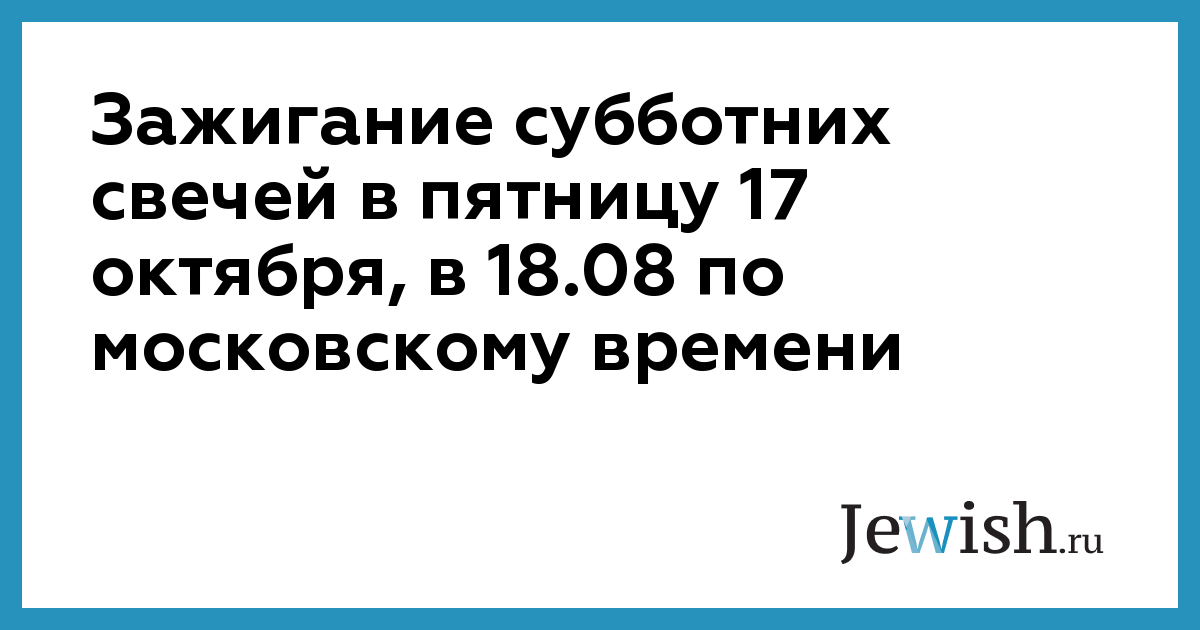 Зажигание субботних свечей в пятницу 17 октября, в 18.08 по московскому времени